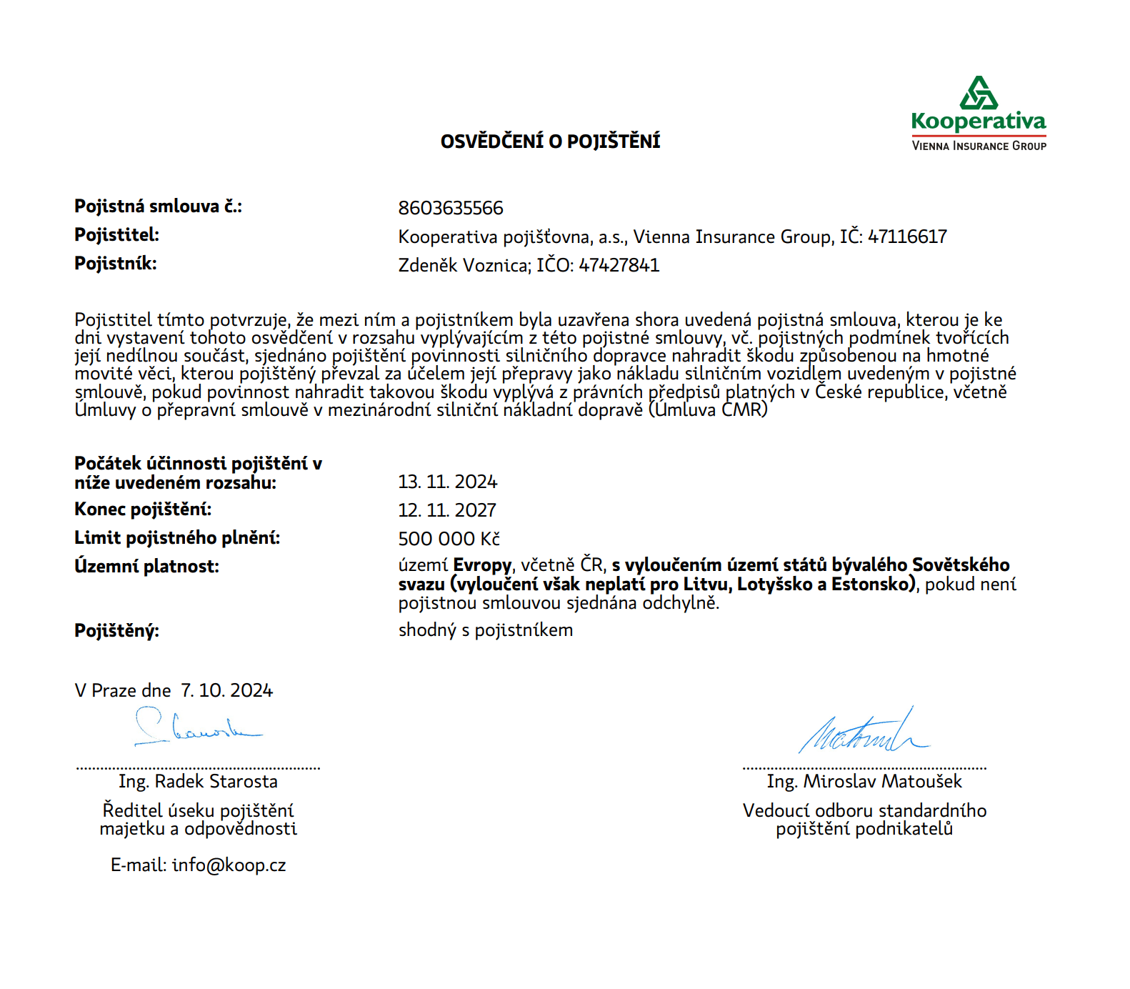 Jsme spolehlivá stěhovací firma, která klade důraz na bezpečnost vašeho majetku. Naše pojištění pokrývá všechny možné situace během stěhování a vyklízení. Jsme pojištěni na částku 500 000 Kč.